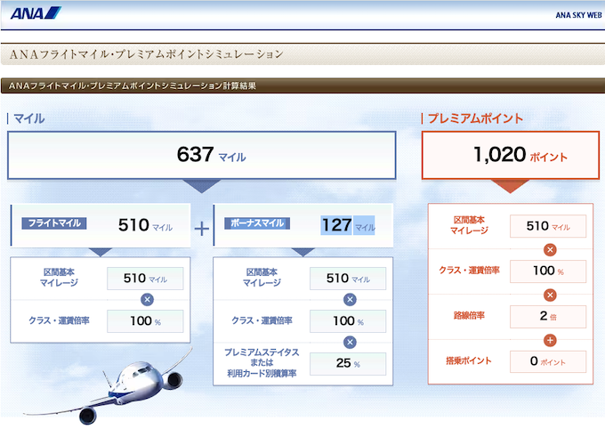 - プレミアム:区間基本マイレージ×クラス・運賃倍率×50%