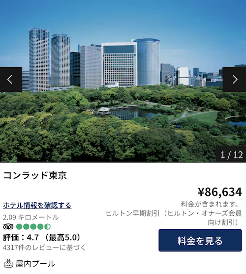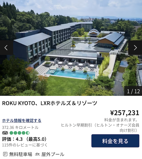 ちなみに、他にも無料宿泊特典があるクレジットカードはありますが、ヒルトンアメックス以上に高級ホテルに泊まれるクレジットカードはありません。