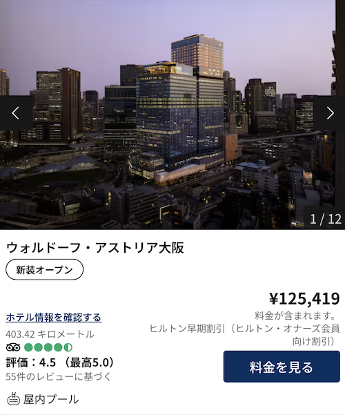 とくに無料宿泊特典では、ヒルトン系列ならほとんどどこでも利用できるため、1泊10万円ごえはもちろん、1泊30万円のホテルにすら無料で宿泊できます。